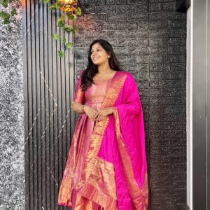 Pink and Blue Litchi Silk big border materinity And feeding wear (Copy)