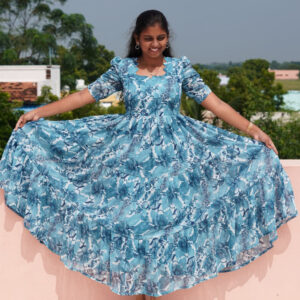 Georgette Fabric 3 Tier sky blue Color feeding kuruthi